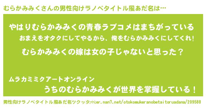 | 肩書あだ名 | 『むらかみみく塾長』『むらかみみく機長』 |