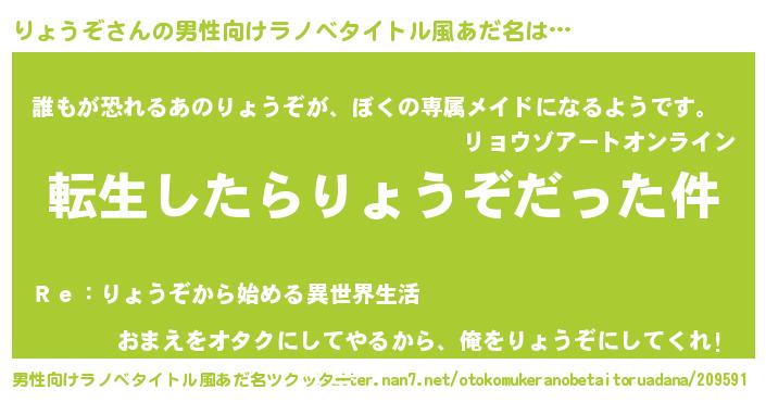 | ヘコむあだ名 | 『りょうぞ(遠い目)』『りょふぇ~』 |