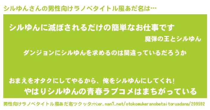 | 胡散臭い通販商品みたいなあだ名 | 『信頼と実績のペンダント…その名も「シルゆん」』 |