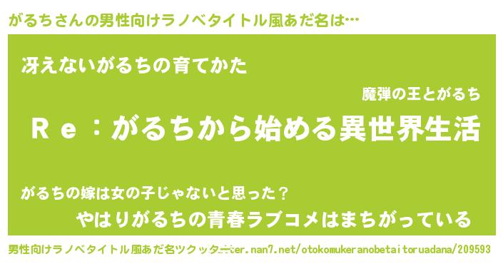 | 女子向けラノベタイトル風あだ名 | 『がるちストレイドッグス』 |