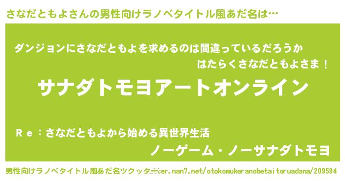 | ヒーロー風カッコイイあだ名 | 『スーパーサナダトモヨ』『暗黒騎士サナ』 |