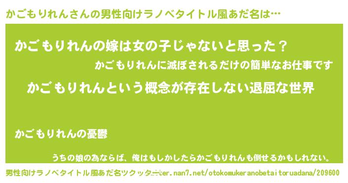 | 胡散臭い通販商品みたいなあだ名 | 『来世でも幸せになれる健康食品…その名も「かごもりれん」』 |