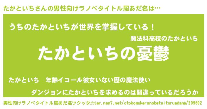 | 胡散臭い通販商品みたいなあだ名 | 『必ず成功する水晶球…その名も「たかといち」』 |