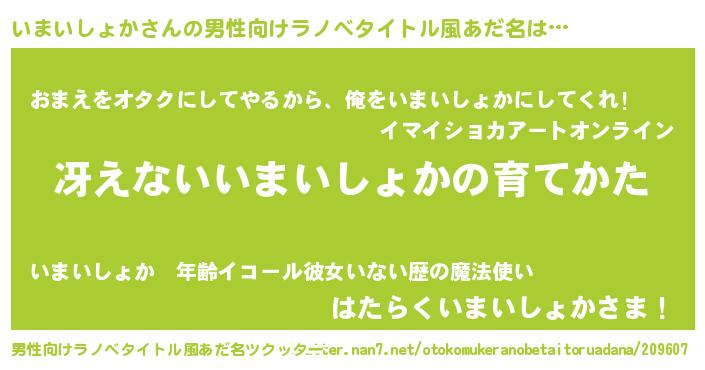 | ヘコむあだ名 | 『いまにー』『いまいしょか(笑)』 |