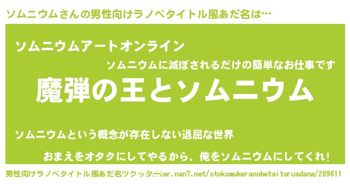 | 意味不明あだ名 | 『住所不定無職ソムニウム(8歳)』 |