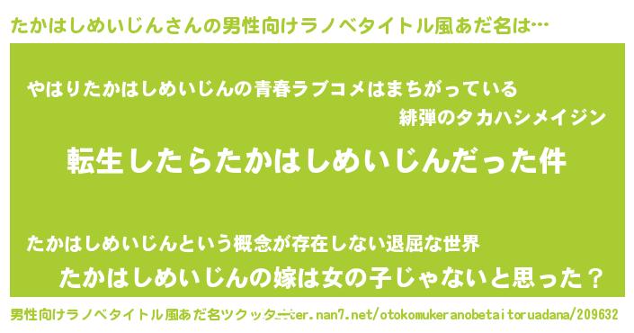 | 料理風あだ名 | 『たかはしめいじんごはん』 |