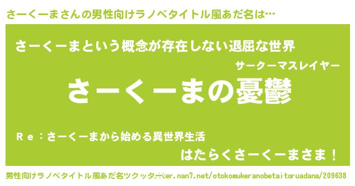 | 女子向けラノベタイトル風あだ名 | 『さーくーま姫と円卓の騎士』 |