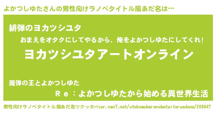 | ヒーロー風カッコイイあだ名 | 『スーパーヨカツシユタ』『仮面ヨカダー』 |