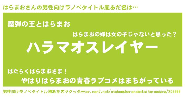 | ヒーロー風カッコイイあだ名 | 『仮面ハラダー』『ウルトラはらまおマン』 |