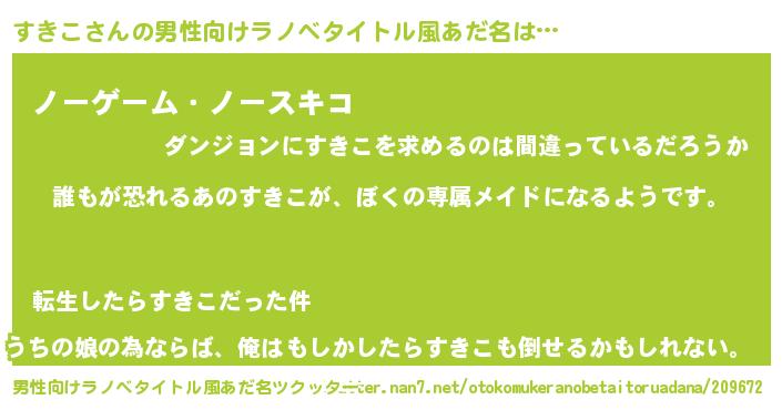 | 女子向けラノベタイトル風あだ名 | 『異世界でカフェすきこを開店しました。』 |