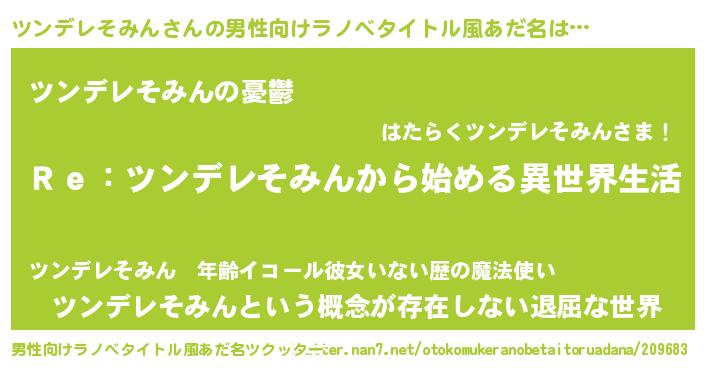 | 女子向けラノベタイトル風あだ名 | 『闇のツンデレそみん』 |