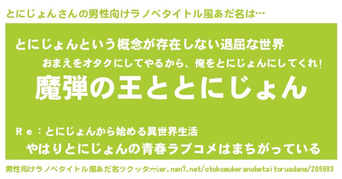 | 意味不明あだ名 | 『住所不定無職とにじょん(59歳)』 |