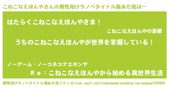 | 意味不明あだ名 | 『自称こねこなえほんや』 |