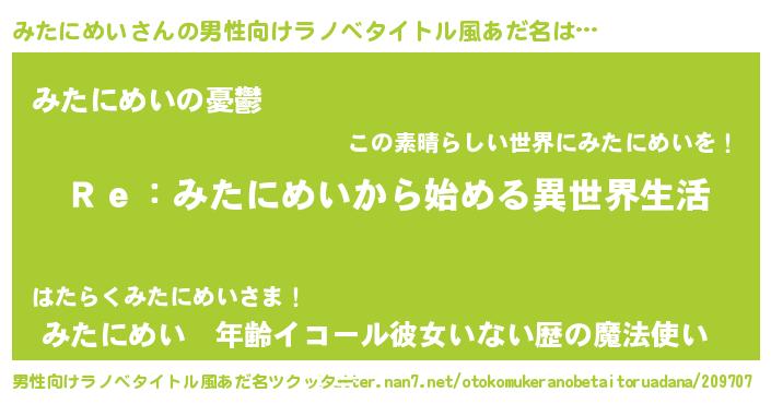 | ヒーロー風カッコイイあだ名 | 『最強戦士ミタニメイ』『仮面ミタダー』 |