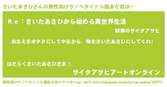 | ヘコむあだ名 | 『さいにゅー』『さいたあさひ(小並感)』 |