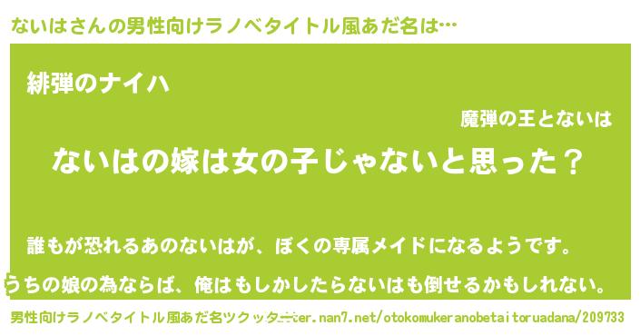 | 女子向けラノベタイトル風あだ名 | 『ないはの卵を拾いまして』 |