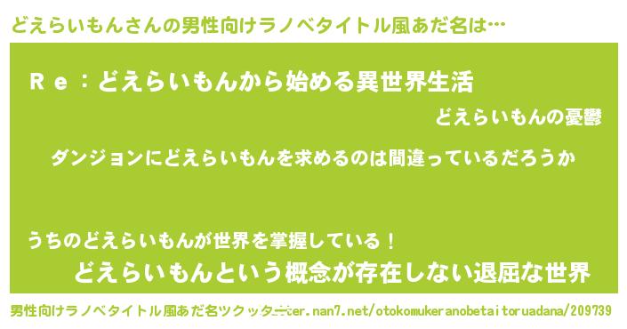 どえらいもんさんの男性向けラノベタイトル風あだ名をツクッター!