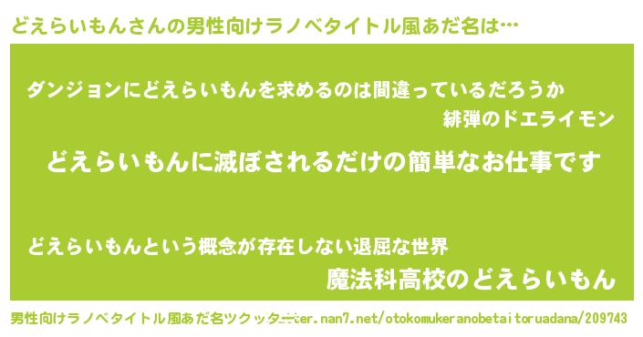 | 胡散臭い通販商品みたいなあだ名 | 『伝統あるサプリメント…その名も「どえらいもん」』 |