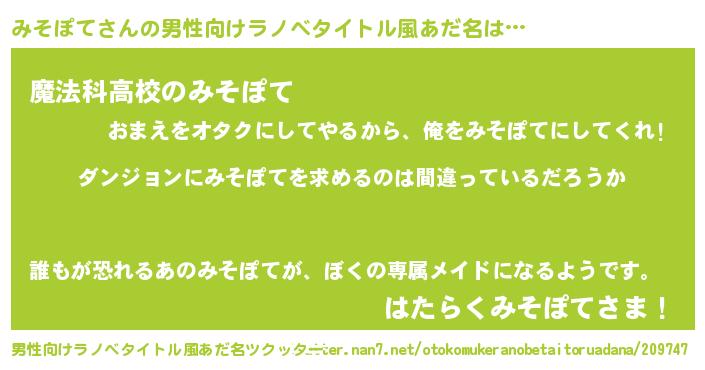 | 胡散臭い通販商品みたいなあだ名 | 『信頼と実績のペンダント…その名も「みそぽて」』 |