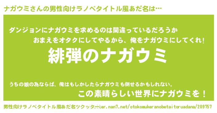 | ヒーロー風カッコイイあだ名 | 『黄金騎士ナガ』『仮面ナガダー』 |