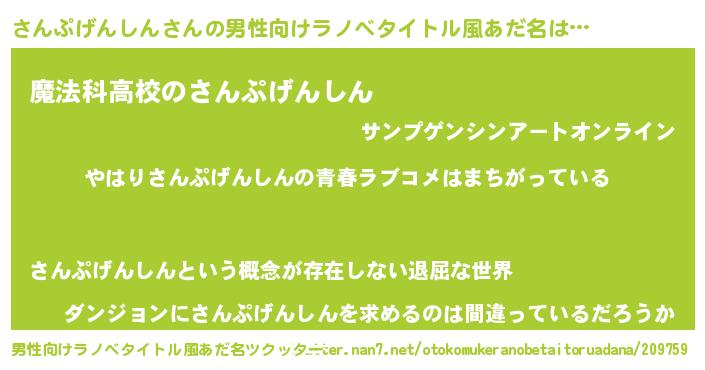 | 意味不明あだ名 | 『さんぷげんしんフォーエバー』 |