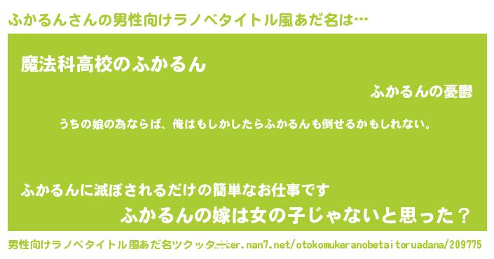 | 女子向けラノベタイトル風あだ名 | 『ふかるん伯爵の花嫁』 |