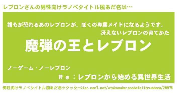 | 女子向けラノベタイトル風あだ名 | 『レブロンが死なない童話 林檎のレブロンの診療簿』 |