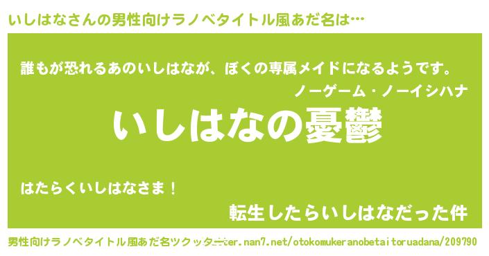 | 女子向けラノベタイトル風あだ名 | 『いしはな姫と円卓の騎士』 |