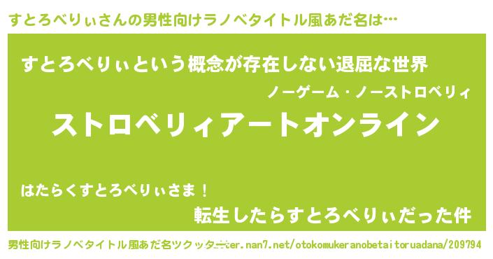 | 胡散臭い通販商品みたいなあだ名 | 『億万長者になれるブレスレット…その名も「すとろべりぃ」』 |