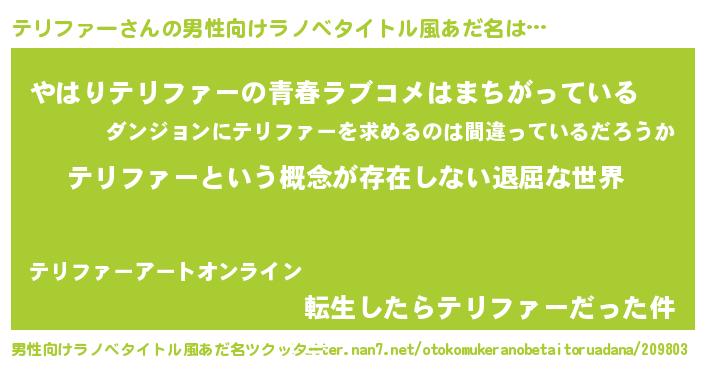 | 意味不明あだ名 | 『永久保存テリファー』 |