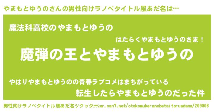 | 女子向けラノベタイトル風あだ名 | 『乙女ゲームの破滅フラグしかない悪役やまもとゆうのに転生してしまった…』 |