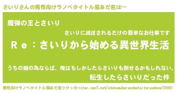 | 胡散臭い通販商品みたいなあだ名 | 『テレビで話題の高麗人参…その名も「さいり」』 |