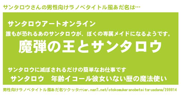 | 意味不明あだ名 | 『住所不定無職サンタロウ(2歳)』 |