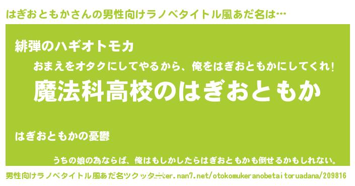 | 意味不明あだ名 | 『自称はぎおともか』 |