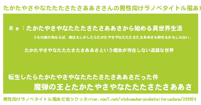 | 胡散臭い通販商品みたいなあだ名 | 『絶対に幸福をもたらす招き猫…その名も「たかたやさやなたたたさたさああさ」』 |