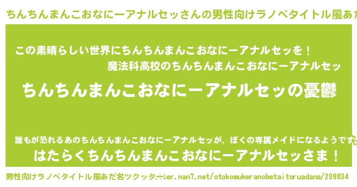 | 欧米人風あだ名 | 『マイケルちんちんまんこおなにーアナルセッ』 |