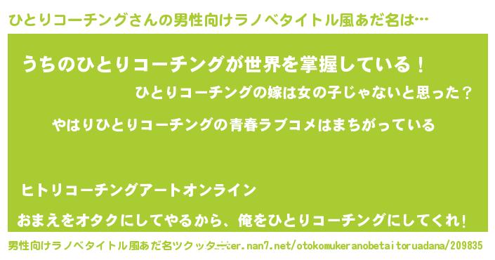 | 女子向けラノベタイトル風あだ名 | 『ひとりコーチングの雑貨屋さん』 |