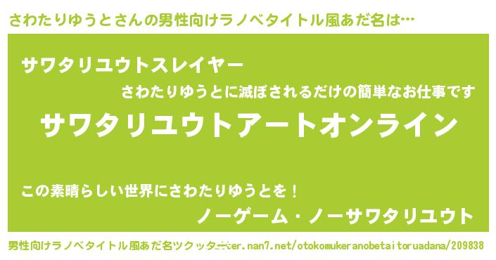 | ヘコむあだ名 | 『さわにゅー』『さわたりゆうと(笑)』 |