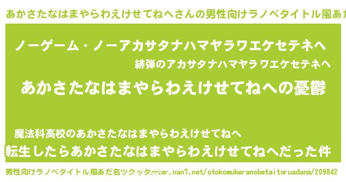 | 女子向けラノベタイトル風あだ名 | 『(仮)あかさたなはまやらわえけせてねへのやんごとなき事情』 |