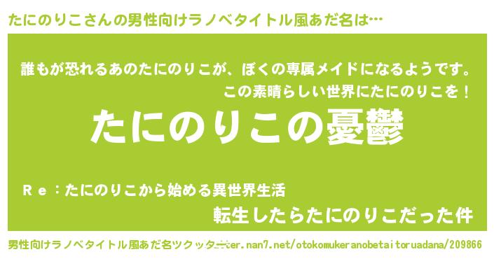 | 女子向けラノベタイトル風あだ名 | 『(仮)たにのりこのやんごとなき事情』 |