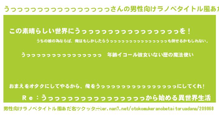 | 胡散臭い通販商品みたいなあだ名 | 『あなたにだけ特別に提供する限定10本のレアな日本酒…その名も「うっっっっっっっっっっっっっっっ」』 |