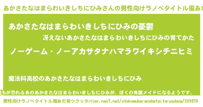 | 女子向けラノベタイトル風あだ名 | 『あかさたなはまらわいきしちにひみ恋絵巻』 |