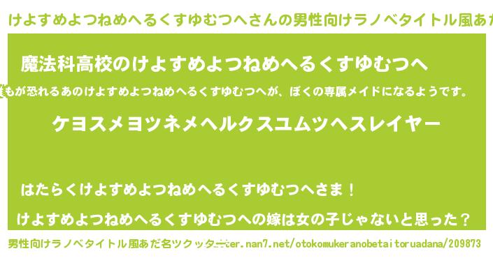 | 女子向けラノベタイトル風あだ名 | 『婚約破棄系悪役けよすめよつねめへるくすゆむつへに転生したので、保身に走りました。』 |