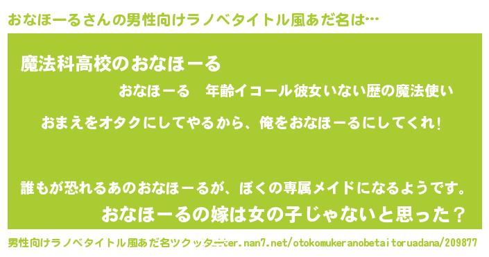 | 女子向けラノベタイトル風あだ名 | 『おなほーる夫妻のなれそめ』 |