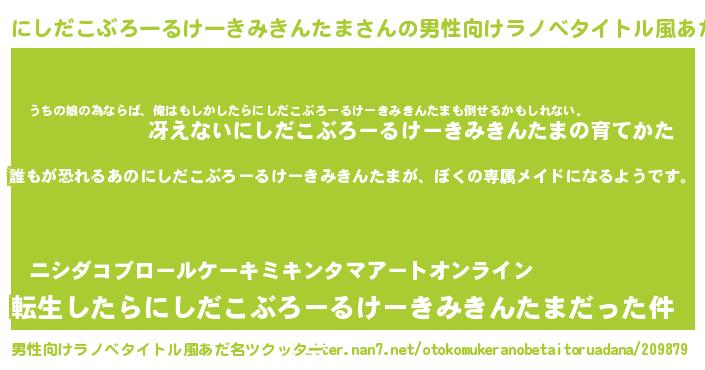 | 女子向けラノベタイトル風あだ名 | 『異世界でカフェにしだこぶろーるけーきみきんたまを開店しました。』 |