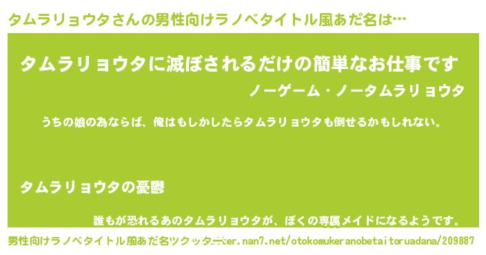 | 女子向けラノベタイトル風あだ名 | 『タムラリョウタの婚約者』 |