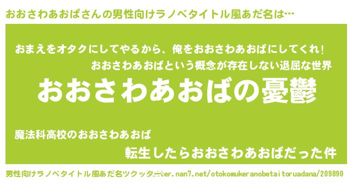 | 女子向けラノベタイトル風あだ名 | 『(仮)おおさわあおばのやんごとなき事情』 |