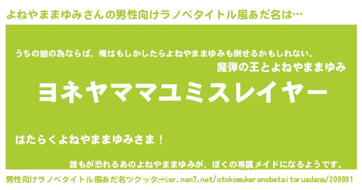 | 女子向けラノベタイトル風あだ名 | 『婚約破棄系悪役よねやままゆみに転生したので、保身に走りました。』 |