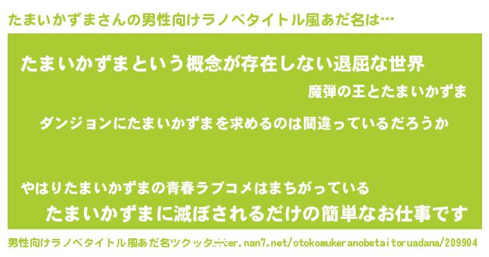 | 胡散臭い通販商品みたいなあだ名 | 『信頼と実績のペンダント…その名も「たまいかずま」』 |