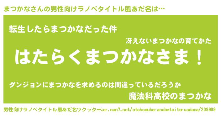 | 意味不明あだ名 | 『しいたけ科まつかな属』『自称まつかな』 |